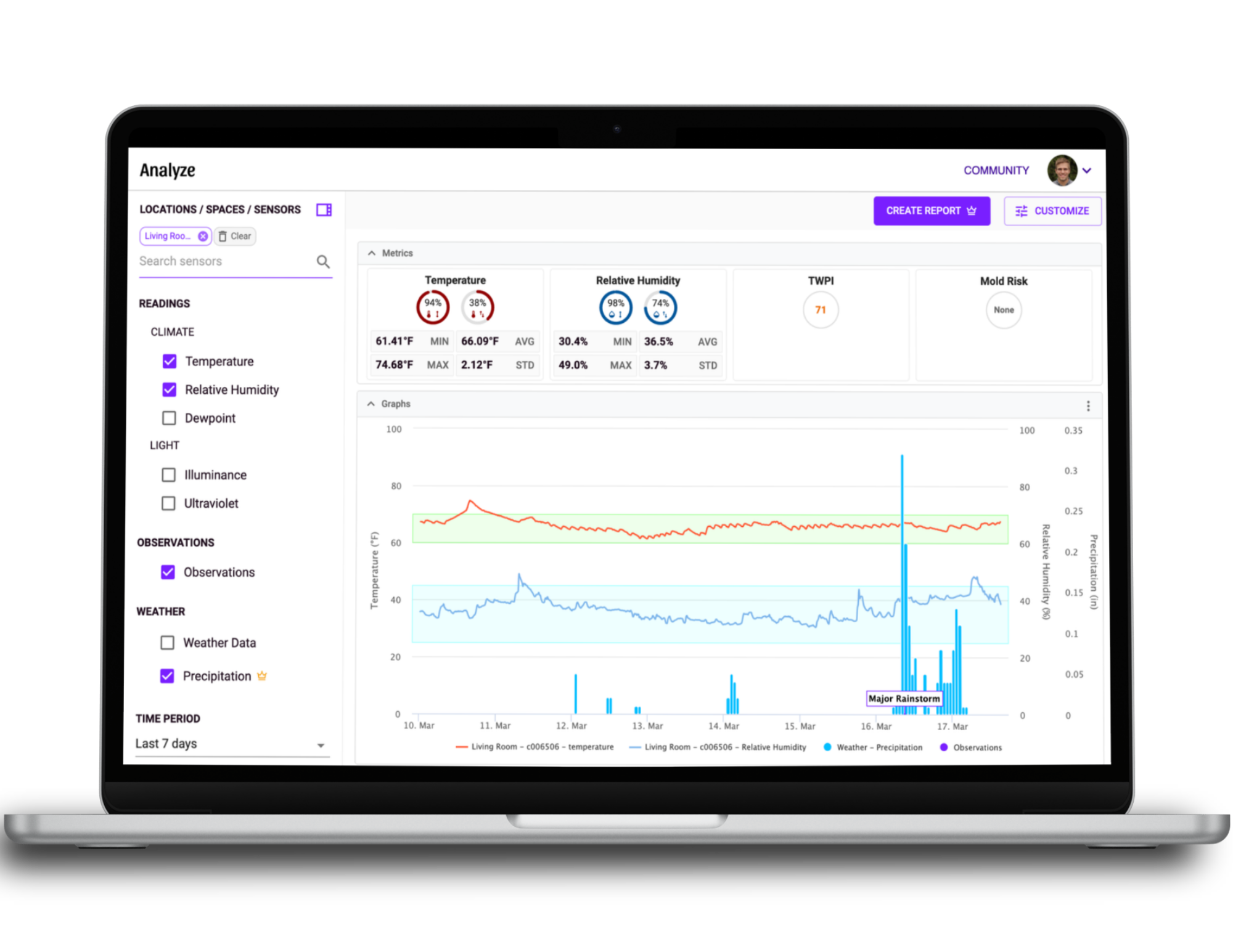 Compare against outdoor weather and precipitation